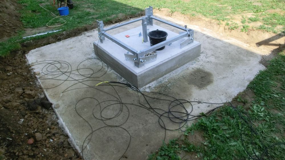 Aus dem Fundament sollten die Kabel lang genug herausragen (ca. 2 m), damit der Anschluss an den Turm problemlos möglich ist. Ebenso muss der Erdungsanschluss mit eingeplant und herausgeführt werden.